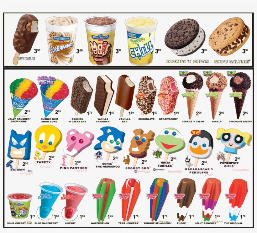 Printed on 185gsm semi gloss poster paper. Ice cream truck menu 2000s February 3 2022. Products include cones popsicles sandwiches frozen fruit.